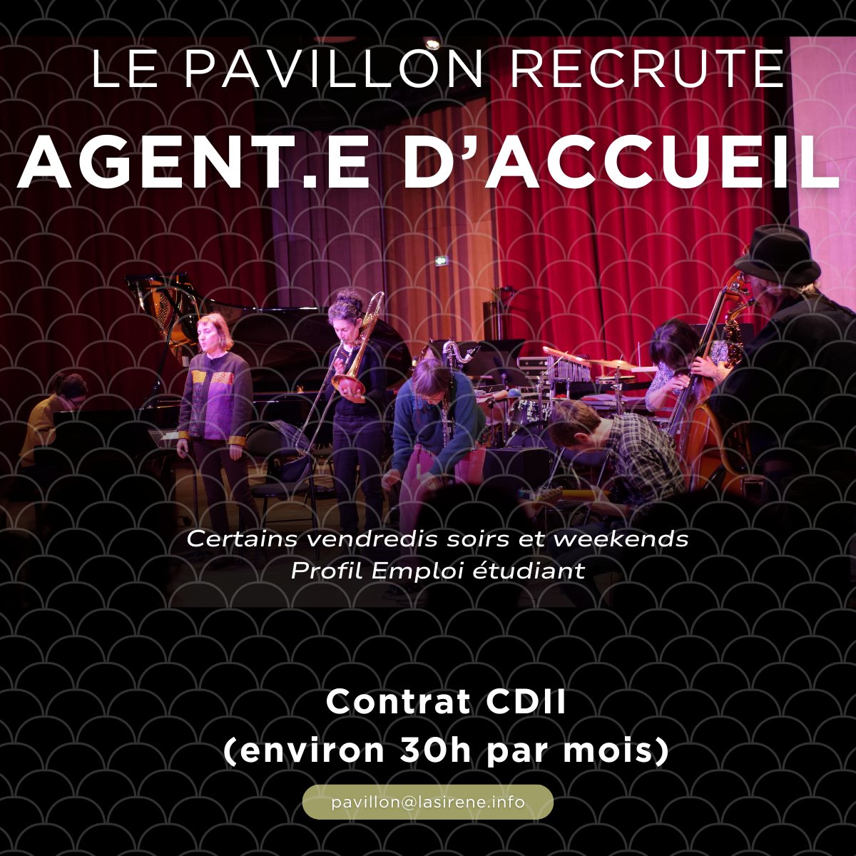 À la une Ven. 05. Déc. 2025 Dim. 07. Déc. 2025 Zahir Festival À la une Le Pavillon de la Sirène recrute un.e agent.e d'accueil À la une Appel à candidature pour l'exposition "Vibrations de la matière" Le Pavillon recherche des artistes pour exposer des oeuvres dans ses espaces de déambulation À la une Découverte instrumentale Mathilde Josse Prochainement Cleynaelly Ven. 05. Déc. 2025 Dim. 07. Déc. 2025 Masterclass Masterclasses du Quatuor Zahir Martin Trillaud Ven. 05. Déc. 2025 21:00 Concert Concert - DUMKA Quintet Jens Thekeevettil Sam. 06. Déc. 2025 Dim. 07. Déc. 2025 Atelier Stage de musique d’ensemble - Saxophones Amateurs Découvrir toute la programmation Locations Le Projet culturel Nous soutenir